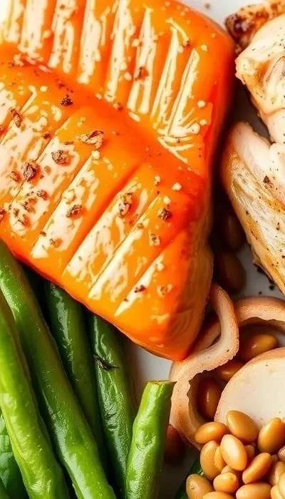 Белок: нежирное мясо (говядина, курица, индейка), рыба (лосось, треска), яйца (при отсутствии аллергии), бобовые. Жиры: авокадо, оливковое масло, орехи и семена (с осторожностью, учитывая риск аллергии). Углеводы: цельнозерновые крупы (гречка, овсянка, рис), овощи и фрукты.
