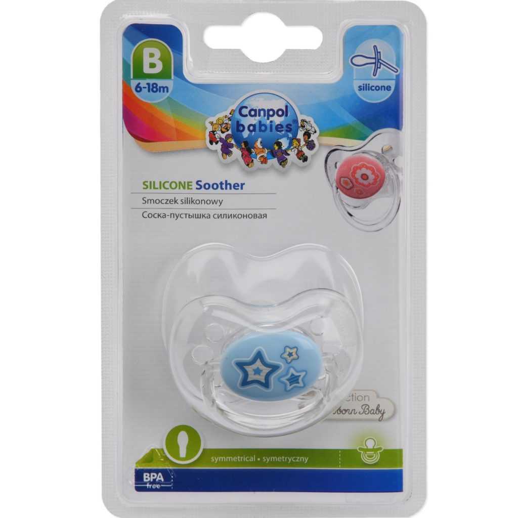 - Динамическая силиконовая пустышка Loviот Canpol Babies выпускается в трёх размерах и имеет стильный современный дизайн. У этой соски уникальное строение: баллончик пустышки «движется» при сосании, как-бы имитируя движение материнского соска. Пустышка позволяет ребёнку свободно дышать носом и глотать слюну и развивает у малыша инстинкт здорового сосания. Стоимость: 150 руб.