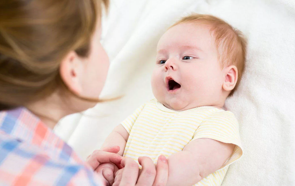 В трехмесячном возрасте от малыша родители уже могут услышать гласные и согласные звуки. Сейчас начинает развиваться детский лепет.