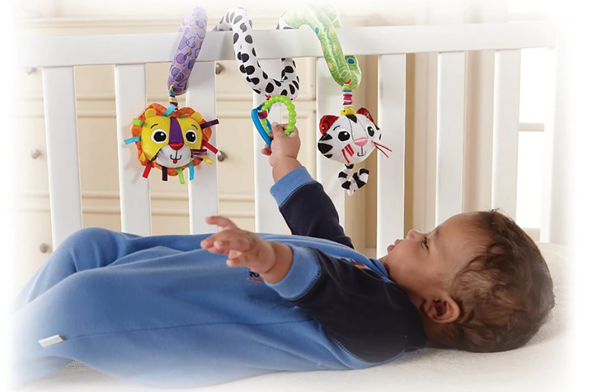 Во время прогулки с малышом очень важно обращать его внимание на яркие или необычные предметы. Необходимо утолять его информационный голод и в детской кроватке, давая ему то, что можно разглядывать с интересом. Как вариант – повесить двигающиеся игрушки над ней