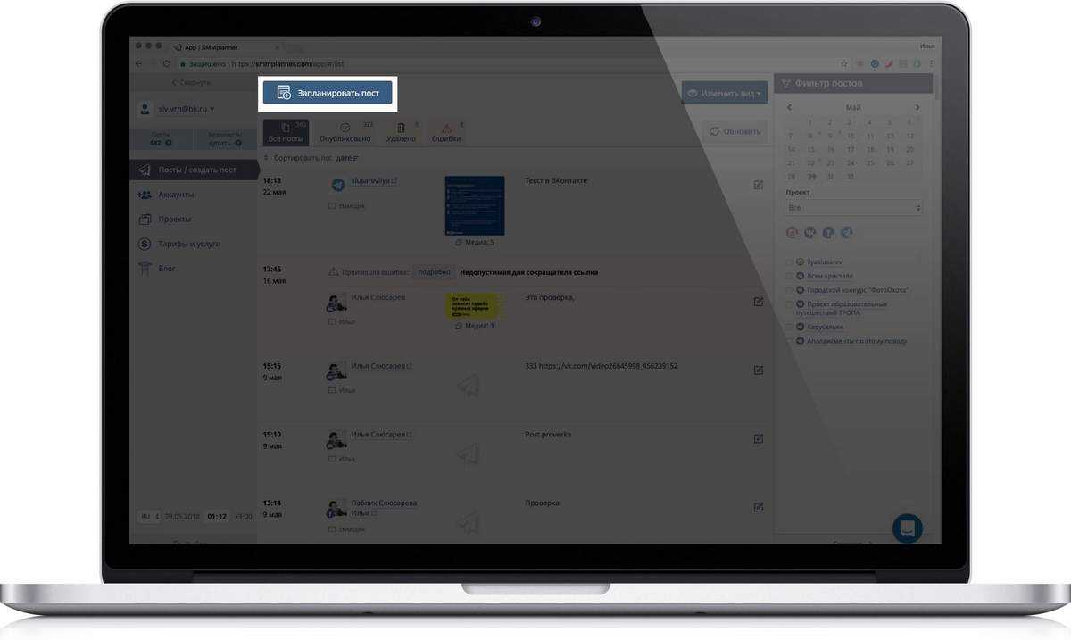 Перейдите в SMMplanner, и во вкладке «Посты / Создать пост», выберите кнопку «Запланировать пост».