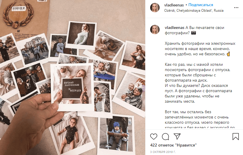 Отличный способ привлечь внимание к странице — показать воспоминания. Нужно только их развесить или разложить на столе, а в описании под постом Instagram — рассказать историю про тех, кто на пленке