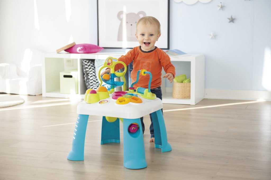 Многофункциональный столик разработан французским брендом Smoby. Помогает обучать мальчиков и девочек геометрическим фигурам, улучшает моторику, формирует логику, мышление, чувство ритма. Поверхность разделена на 4 игровые зоны:
