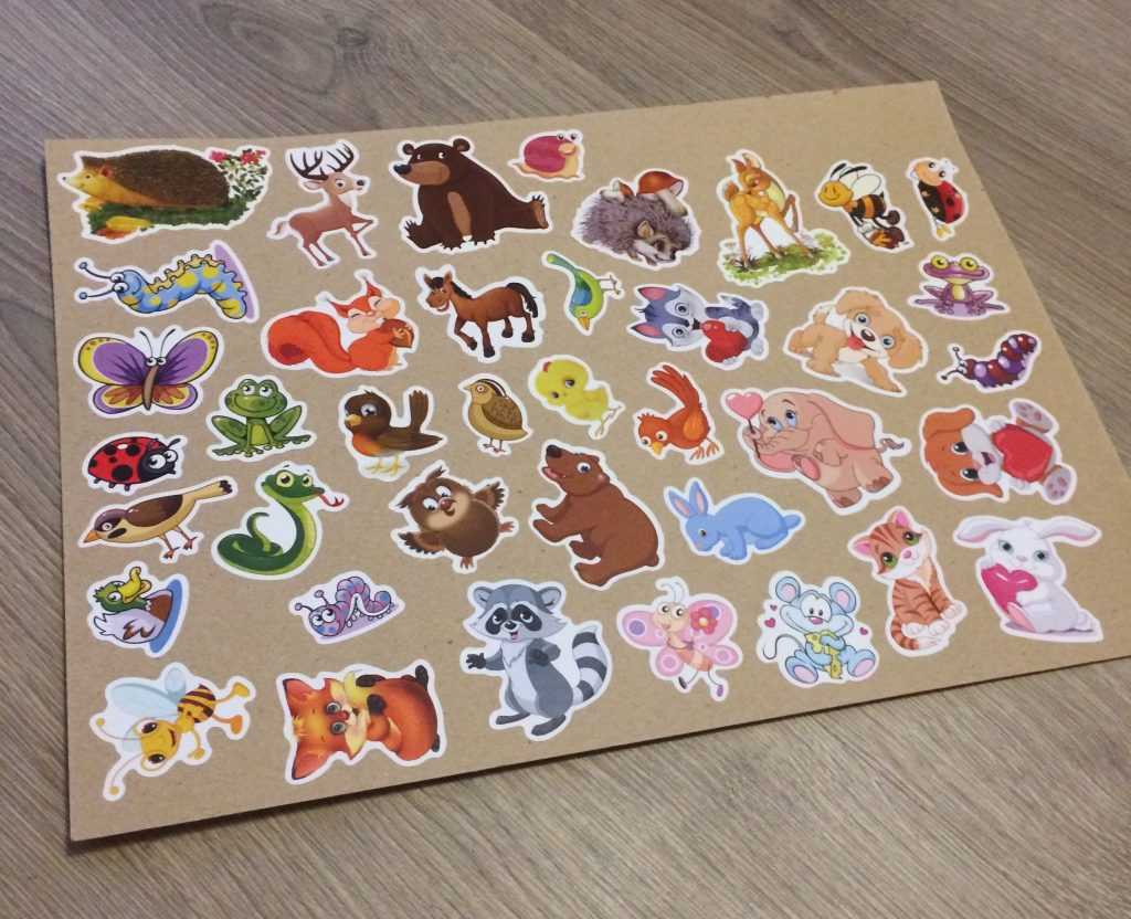 — наклейки или картинки. Я брала набор наклеек «Лесная жизнь» из магазина Фикс Прайс. Вы можете купить любые другие наклейки, вырезать картинки из журналов или книг, или даже распечатать нужные картинки на цветном принтере.