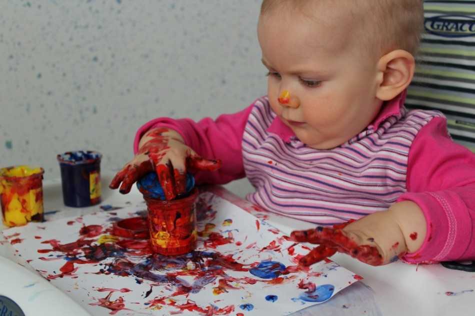 Первое, что попробует сделать ваш начинающий художник шести месяцев, — отправить краску себе в рот. Это совершенно естественно для ребенка в таком возрасте. Наиболее частая реакция родителей — ограничивать движение рук и одергивать ребенка постоянными «нельзя». К сожалению, такие действия исключают свободную деятельность малыша. В этом случае весь смысл процесса рисования пропадает.