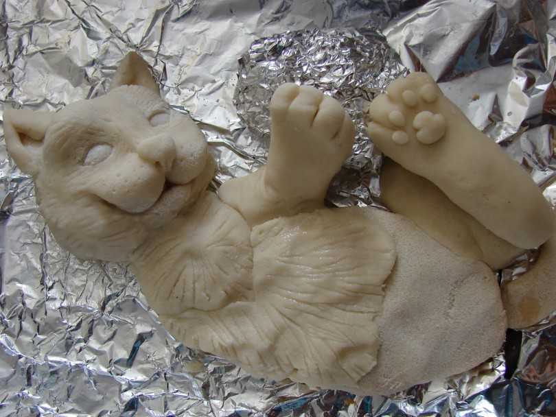 1. Если неправильно подобрана мука. Для большей прочности можно добавить в тесто ржаной муки (цвет будет более теплый и потрескиваний быть не должно, например, стакан обычной + стакан ржаной , 1 к 1); 50 гр. крахмала тоже придают тесту эластичность и не дают потрескаться. Также можно добавить клей ПВА, поскольку он тоже придает пластичность и не дает подняться тесту.