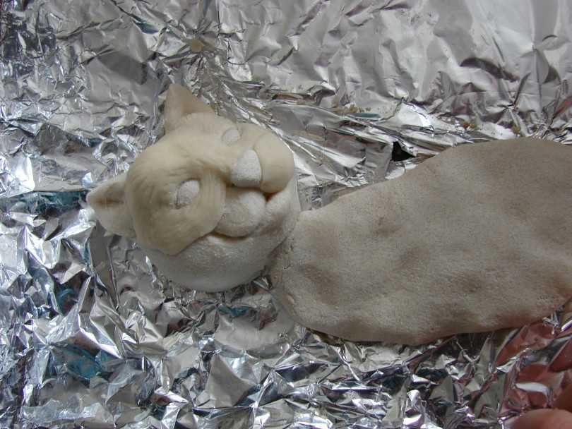 Если в предыдущем варианте мышонок мог просто лежать на горизонтальной поверхности, то в этом варианте мы рассмотрим, как сделать вертикально сидящего зверька. Этот прием можно проделывать и на других поделках, если нужно закрепить элементы поделки, чтобы после сушки они не рассыпались.