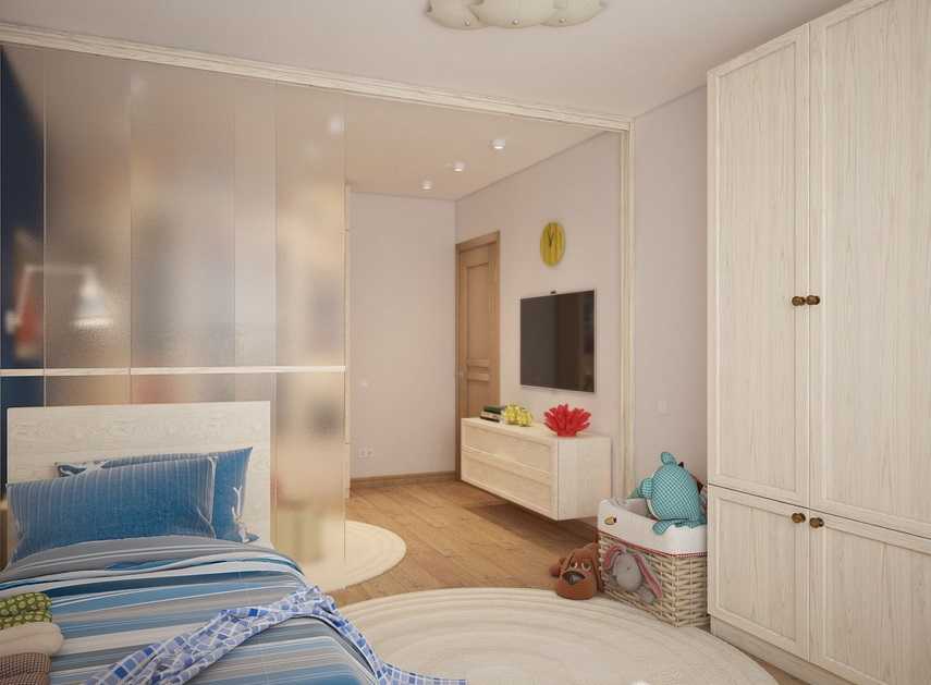 Разделение иногда выбирают и в ситуациях, когда отдельная комната в квартире есть, но ребенок слишком мал, чтобы проживать там. Поэтому несомненным плюсом совмещенной комнаты является возможность контроля за ребенком со стороны родителей. Разделить пространство можно не только в спальне, но и в зале, если спальня маленькая.
