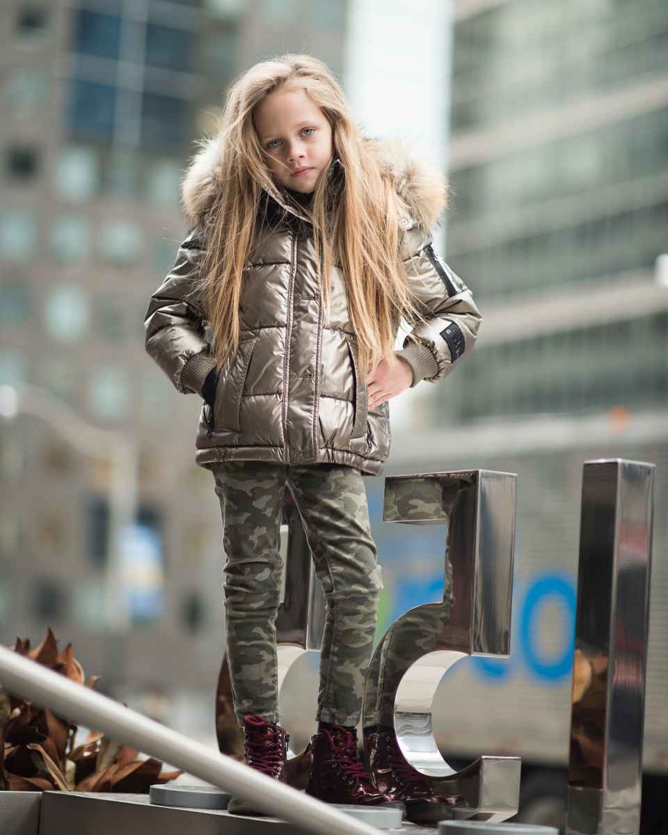 Куртка-парка стала более демократичной к малышам, сохранив при этом свою характерную суровость. Она достаточно длинная, чтобы защитить от холода, оснащена застёгивающимися карманами, сделана из материалов, отторгающих воду и предотвращающих загрязнения.