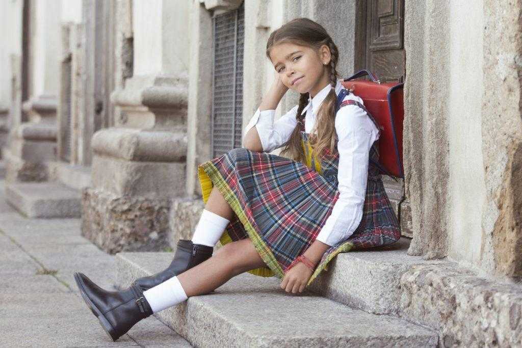 - В качестве школьной униформы дизайнеры рекомендуют клеточку и мелкую полоску;