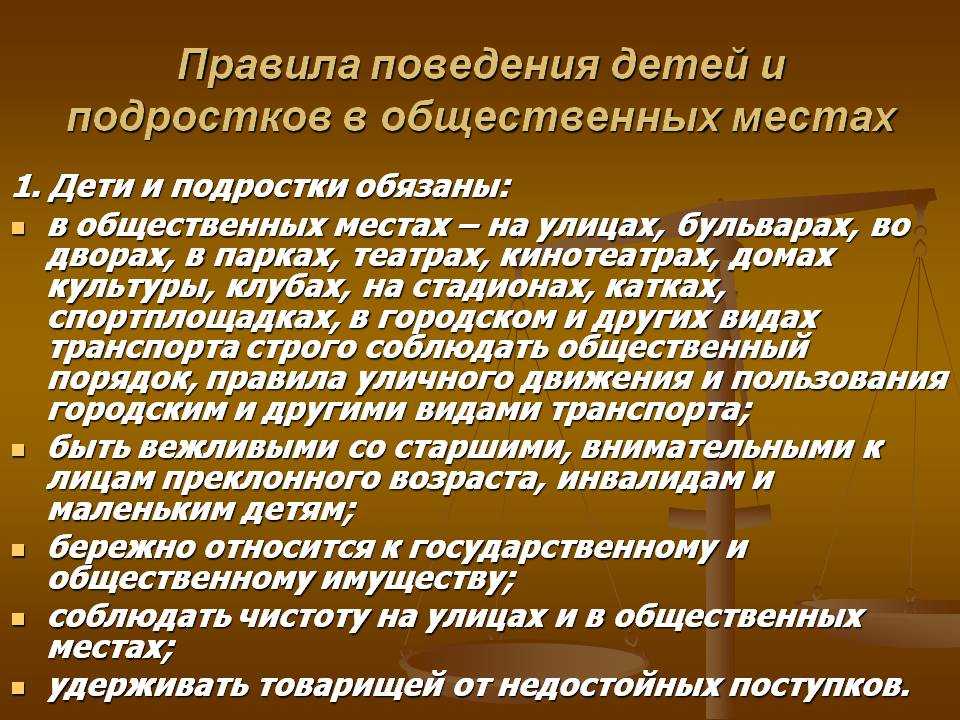 Существуют официальные правила поведения детей – их перечень можно найти в детских и учебных учреждениях. Требования к поведению подростков, конечно, намного сложнее, чем для малышей, но основные, общие для всех, приведены в списке: