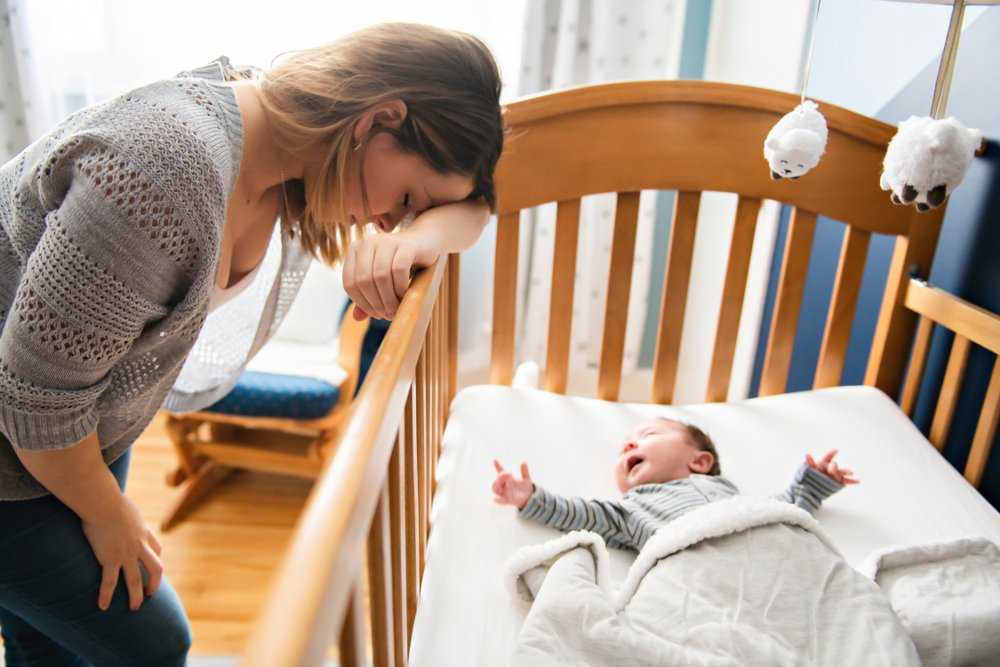 Измотанная ночными подъемами мама