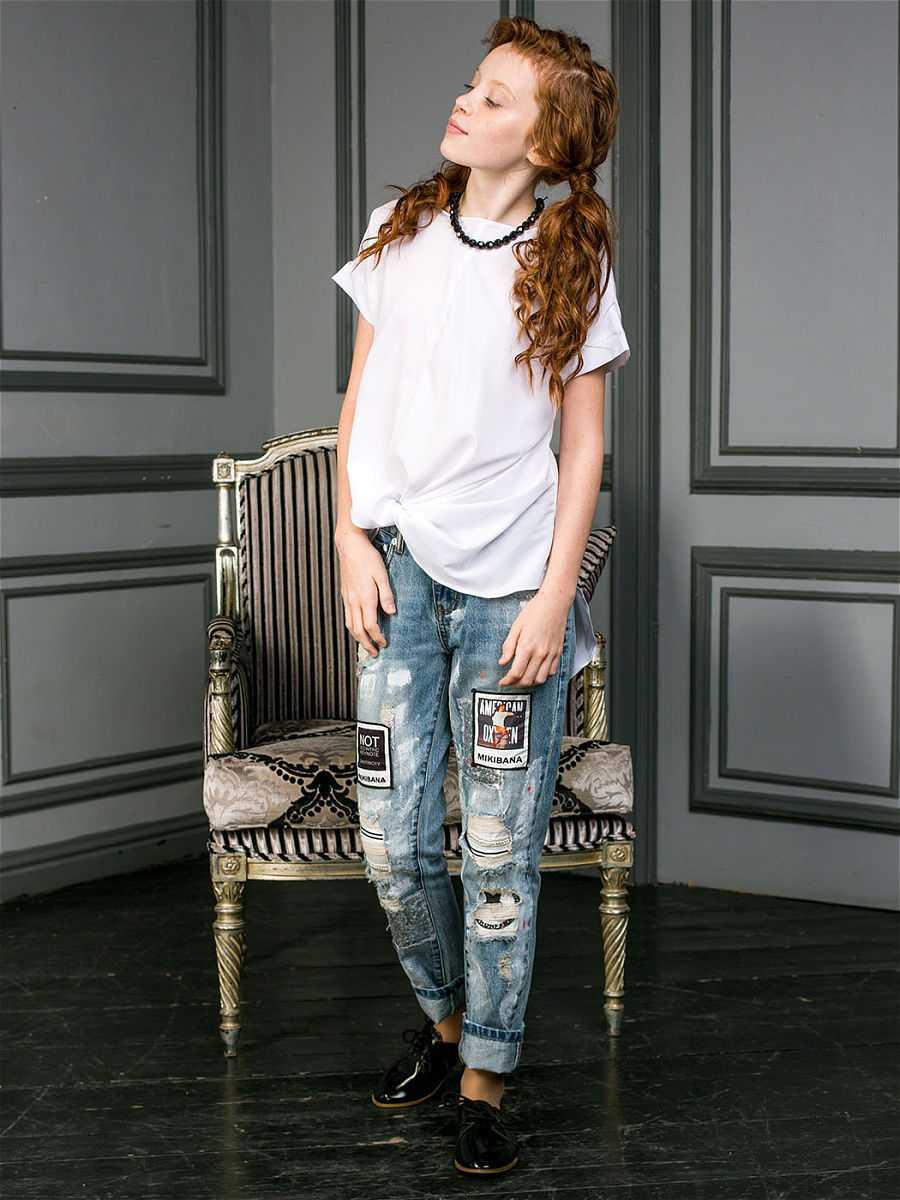 В новом сезоне популярны модели светлых оттенков, джинсы с потертостями и рваными краями, зауженные модели-скинни, модели с яркими цветочными и кружевными вставками. Особенно нравятся девочкам модели с аппликациями мультяшных героев или надписями.