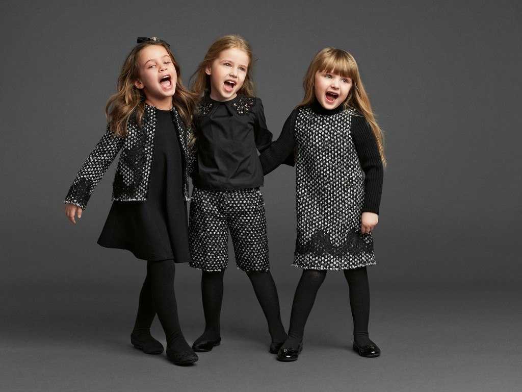 Модный дом Dolce&Gabbana предлагает для детской линии сочетание черного цвета с различными принтами. Одежду девочки помогут украсить цветочные принты, изображения животных и геометрических фигур. Всегда в моде остаются всевозможные полосы и горох.