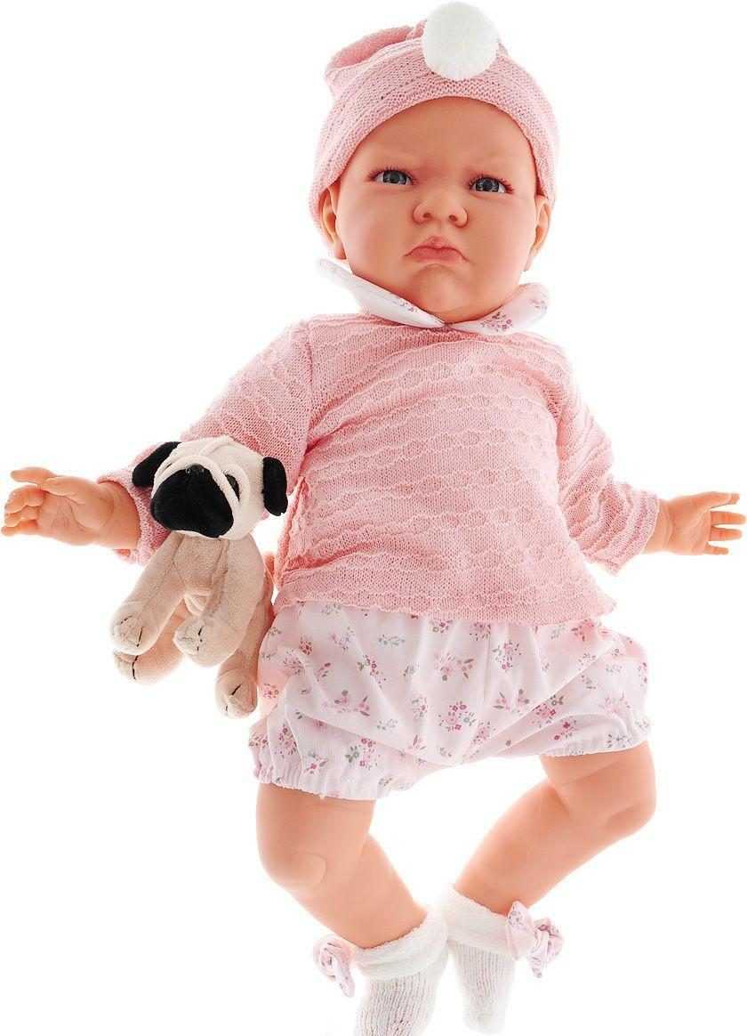 Мягконабивная симпатяга непременно станет лучшей подружкой вашего ребенка. Этот симпатичный пупс — реалистичная модель младенца. Одета кукла во флисовую шапочку и комбинезон. В комплект также входит бутылочка с соской и ботиночки-пинетки. Глаза вставные, не закрываются. Голова, ручки и ножки виниловые. Игрушка достаточно большая (650 мм), поэтому рекомендована подросшим ребятишкам 3-6 лет.