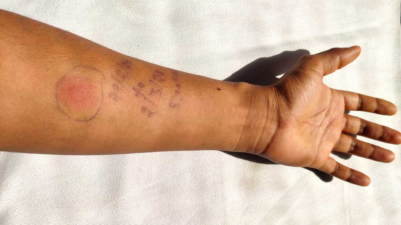 После введения туберкулина, на 2-3 день образуется специфическое уплотнение кожи. На вид это возвышающийся над кожей, немного покрасневший округлый участок кожи, от обычного покраснения на ощупь отличающийся незначительным уплотнением. Чем больше в организме знающих о туберкулезной палочке иммунных клеток, тем больше будет размер уплотнения.