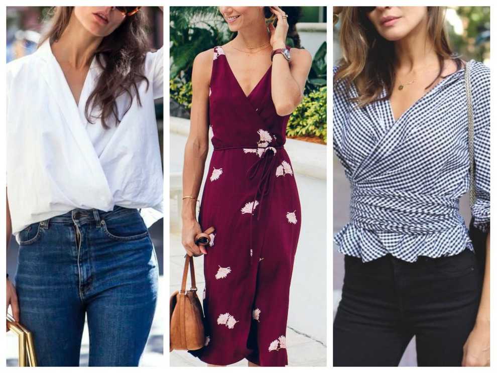Обратите внимание на модели платьев и блузок с запахом. С одной стороны, это очень модный фасон, который подчеркивает женственность