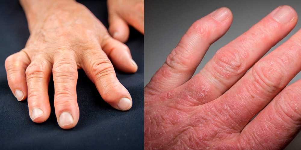 На фото ревматоидный и псориатический артрит рук