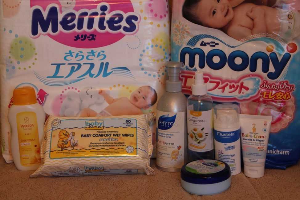 подгузники. Лучше не брать сразу много упаковок памперсов одного вида, так как бывает, что на некоторые марки у ребенка происходит высыпание и приходится подбирать другие. Только удостоверившись в том, что на данный тип подгузников не возникает аллергической реакции, можно ими хорошенько закупаться;