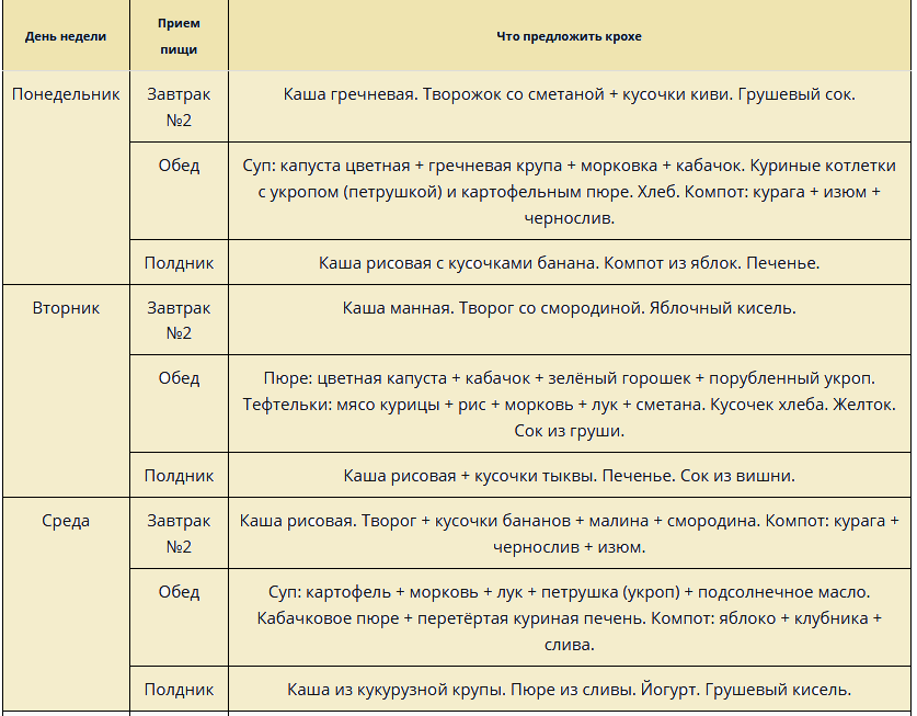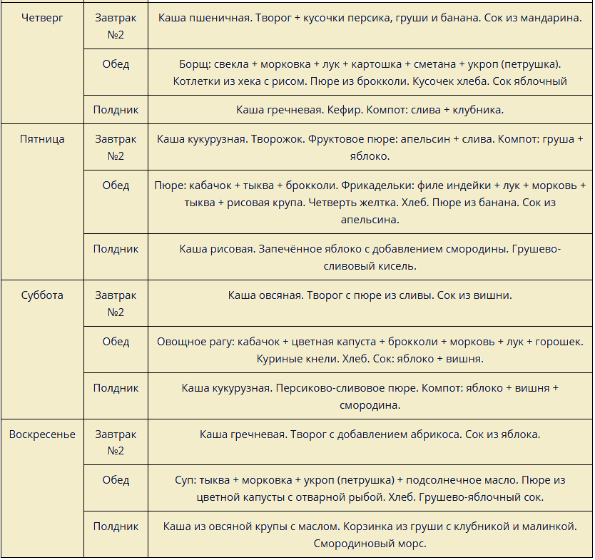Рекомендуемые продукты и их количество для ребенка 11 месяцев