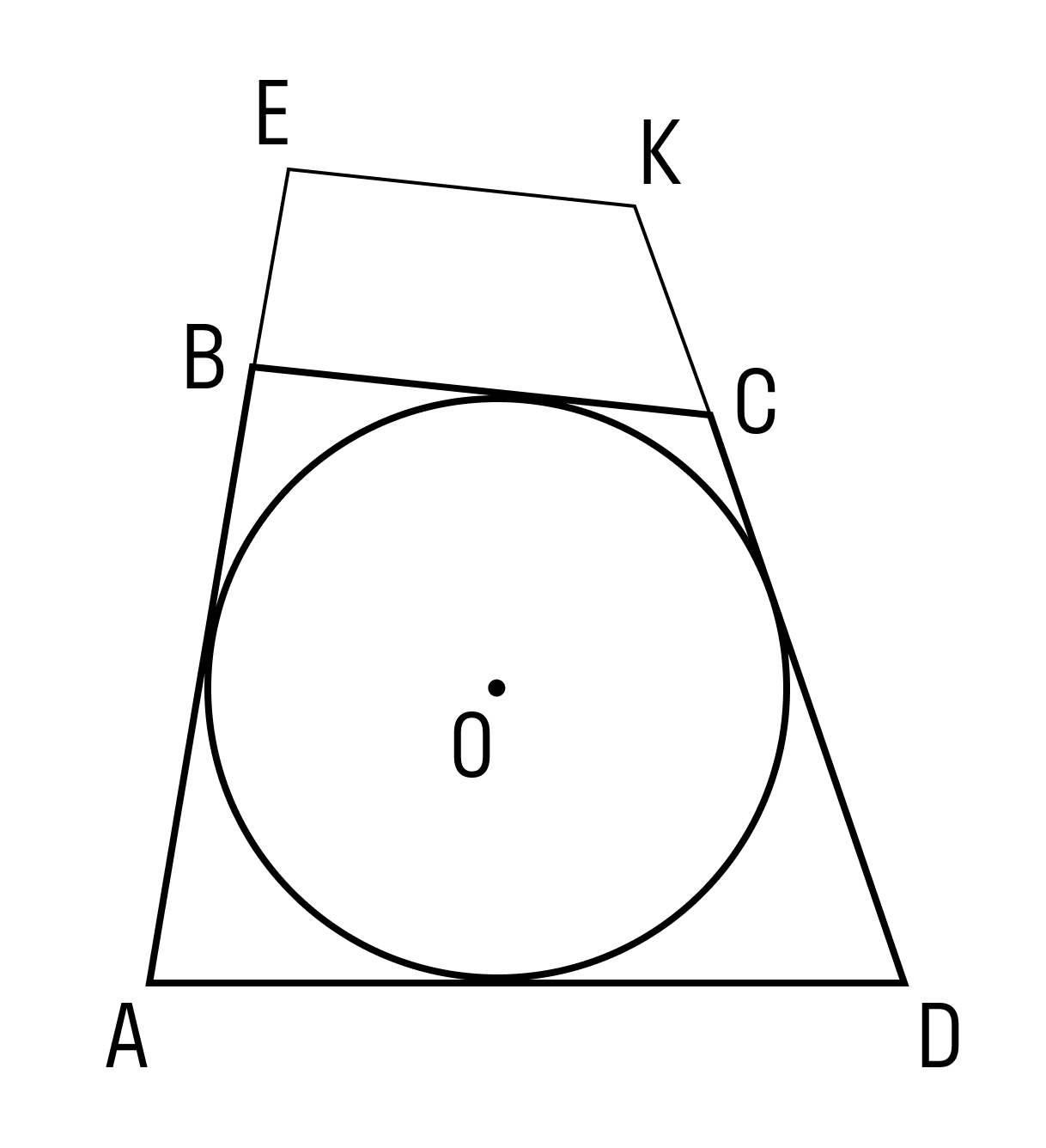 На рисунке четырехугольник АВСD описан около окружности с центром О, а четырехугольник АЕКD не является описанным около этой окружности, так как сторона ЕК не касается окружности.