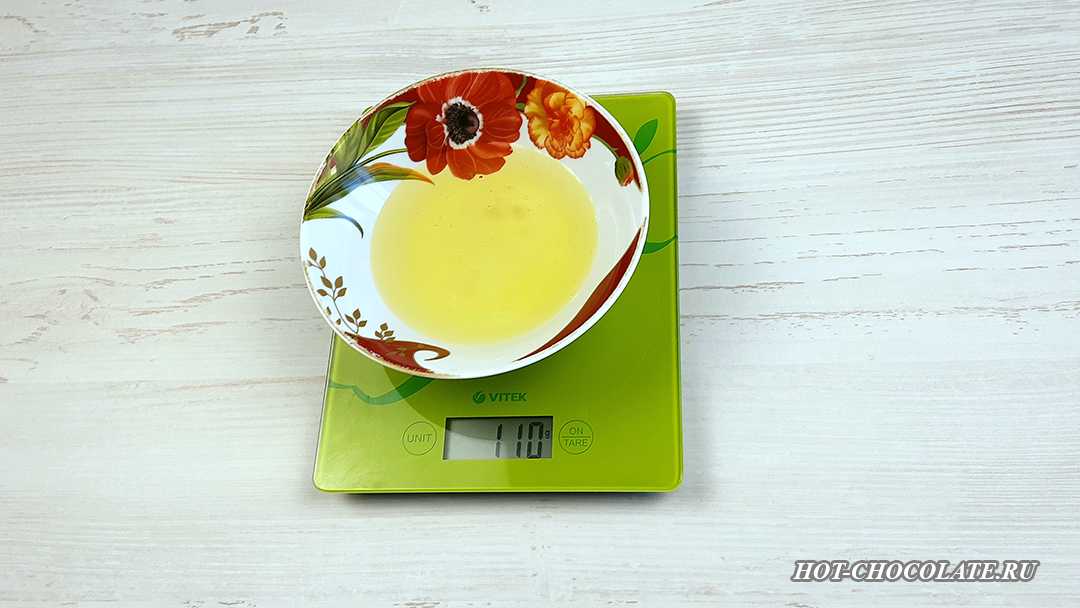 Взвешиваем белки, так как от их массы будет зависеть масса сахара и сахарной пудры. У меня получилось 110 г белков (от 3 яиц категории С0).
