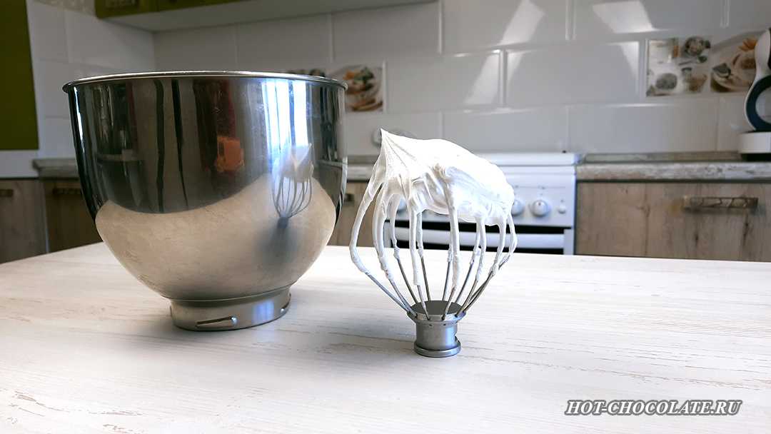 Общее время взбивания меренги у меня составляет 10 — 12 минут. Готовая меренга стабильная и глянцевая.