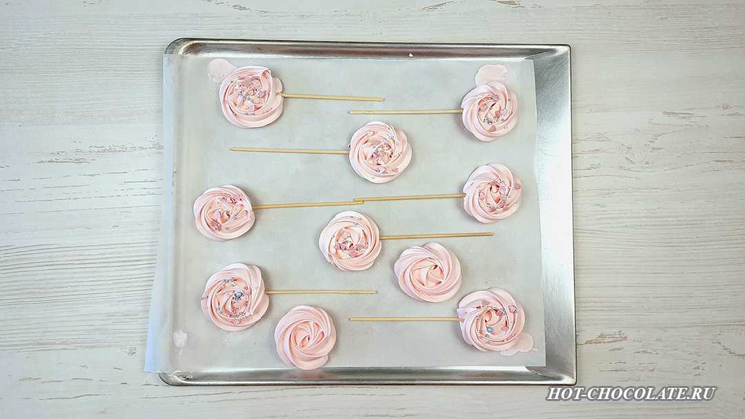 Перед сушкой в безе можно вставить деревянную шпажку.