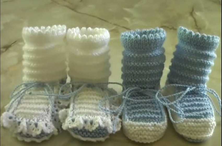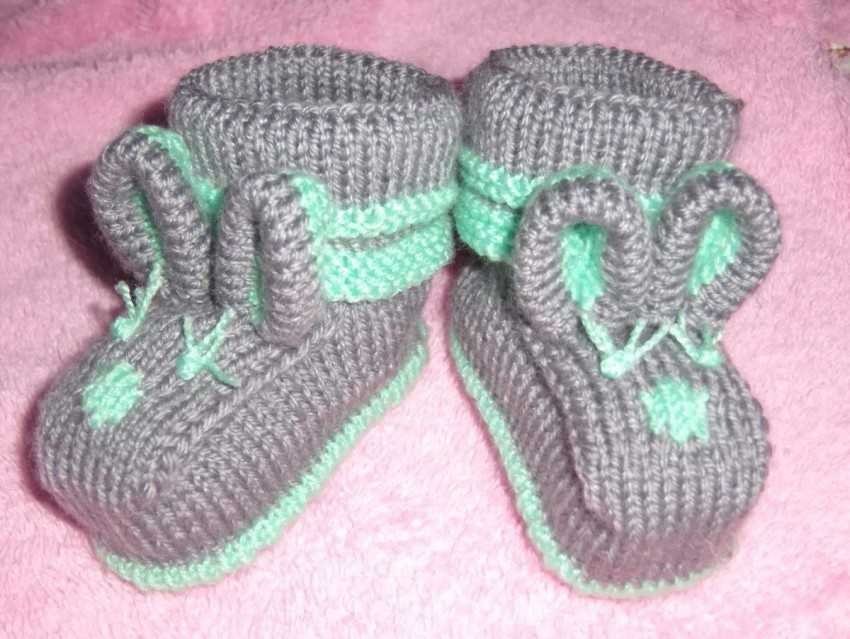 Пинетки спицами для новорожденных на спицах со шнуровкой