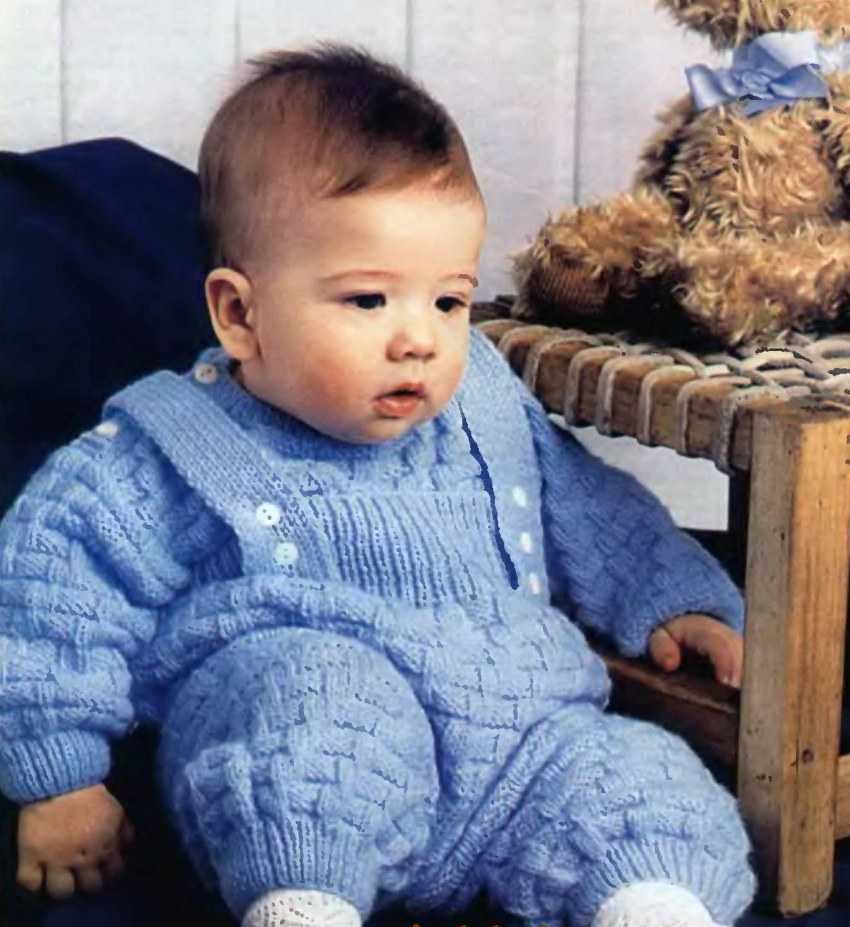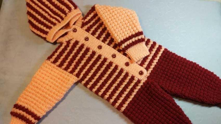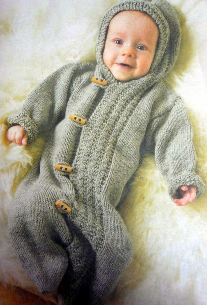 Вязать лучше всего, прибавив несколько сантиметров, иначе малыш вырастет из еще недовязанного комбинезона.