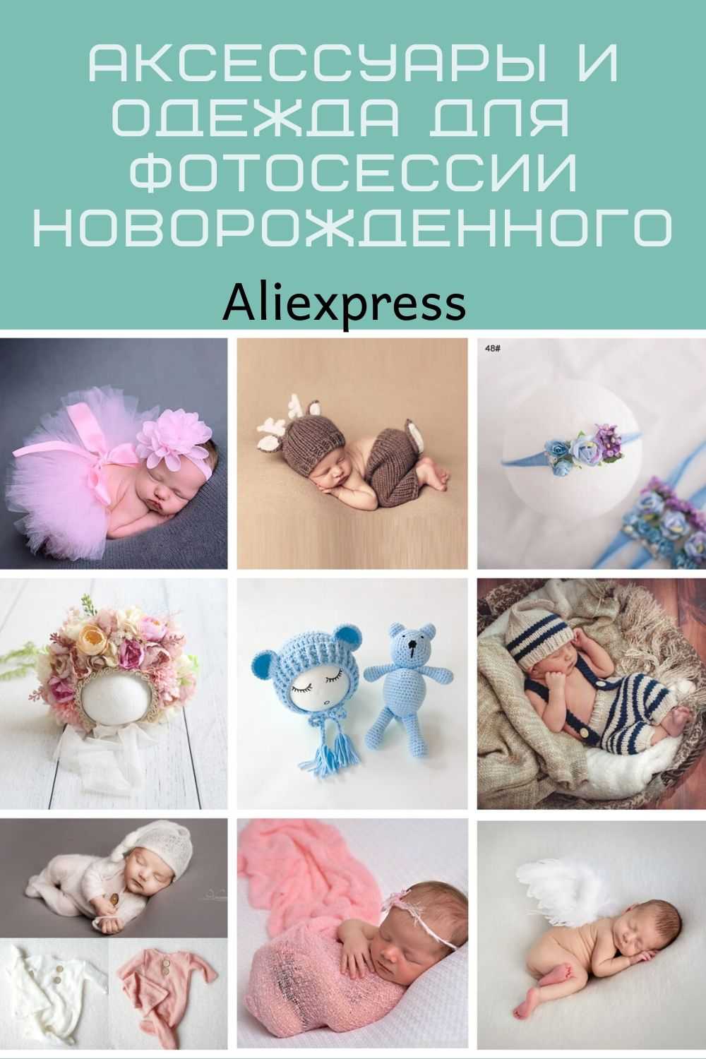 Аксессуары! Вязаные шапочки (Алиэкспресс), повязочки с цветами (Алиэкспресс), их можно купить, а можно сделать самостоятельно. Для заворачивания младенцев, в магазине тканей можно купить небольшой отрез гипюра или трикотажа (Алиэкспресс). Подберите аксессуары в одной цветовой гамме и так, чтобы они гармонично сочетались с выбранным вами фоном: были либо контрастными к фону, либо наоборот в одном цвете с ним.