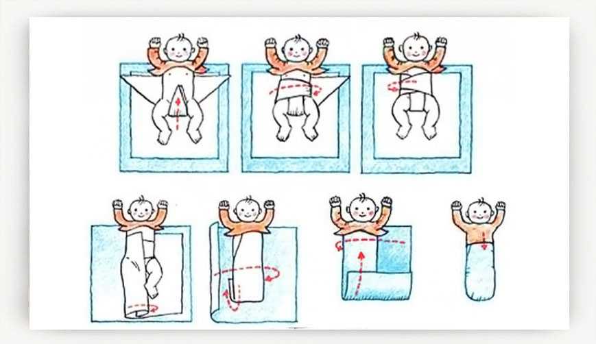 Если кроха перевозбудился после прогулки или похода в гости, лучший способ успокоить его – завернуть в мягкую ткань, накрыть одеялом и покачать. В период прорезывания зубов или при другом недомогании этот метод тоже подходит. Как долго малыш будет пребывать в мягких путах младенчества – зависит от мамы.
