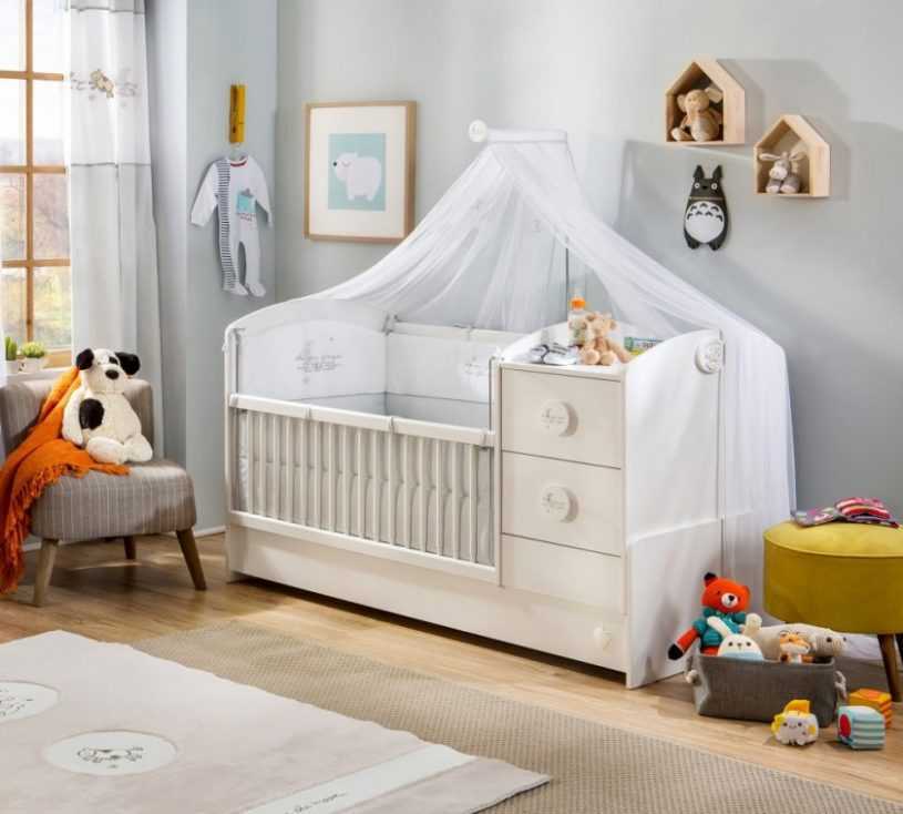 Трансформер – самый практичный вариант. Он прослужит ребенку долго позволяет вместить множество вещей, превращаясь из маленькой кроватки в диванчик и даже в кровать для школьника.