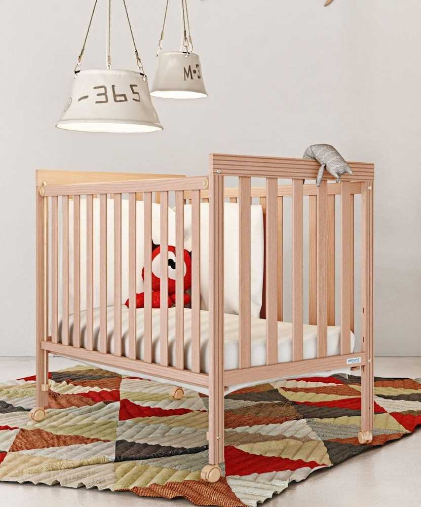 Желательно, чтобы кроватка была изготовлена из крепкой породы древесины. Поперечный маятниковый механизм будет экономить пространство.