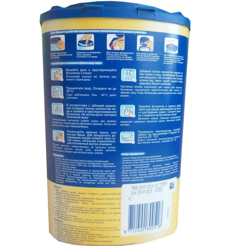 Производитель заботится и о качестве, и об удобстве использования выпускаемой продукции. На упаковке каждой баночки есть подробное описание, как готовить смесь Нутрилон, а также рекомендации, в каком количестве давать ее детям разного возраста. Удобная мерная ложечка для засыпки порошка в бутылочку входит в комплект поставки.