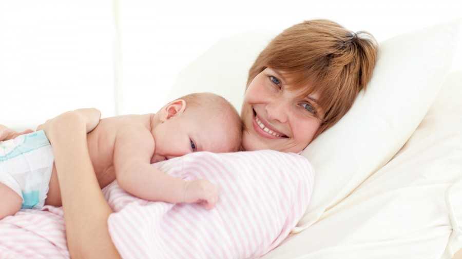 В первые месяцы жизни, врачи советуют осуществлять кормление в позе, когда и мама и ребенок спокойно лежат на боку с подушками под головами.