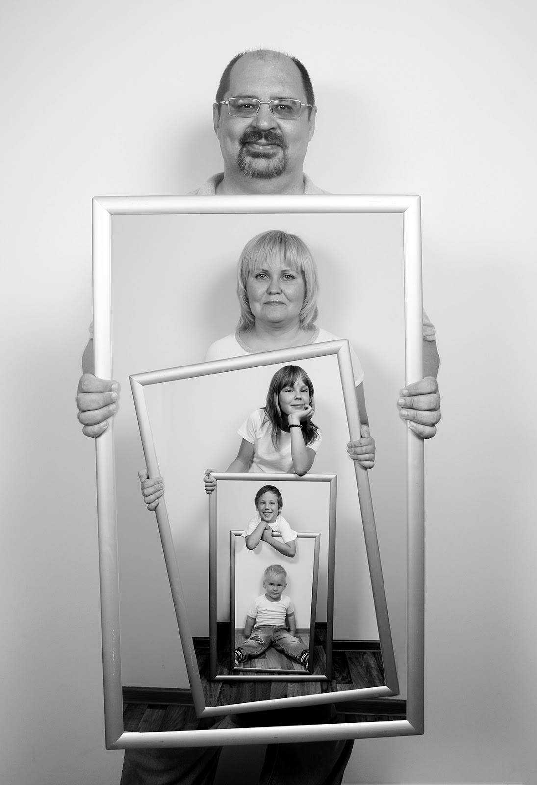 Идеи с фоторамками и рамками для картин все больше пользуются популярностью. Вариации их применения могут быть разнообразными. Общая фотография в рамке, или каждый член семьи держит более младшего в фоторамке. Поэкспериментировать на эту тему стоит, наверняка такие фото придутся по вкусу всем членам семьи.
