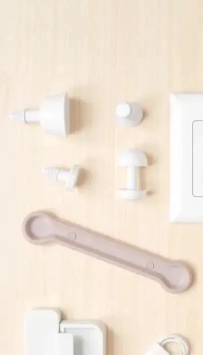 - Электричество: Розетки оснастите заглушками. Электрические провода от техники закрепите и сделайте недоступными.
