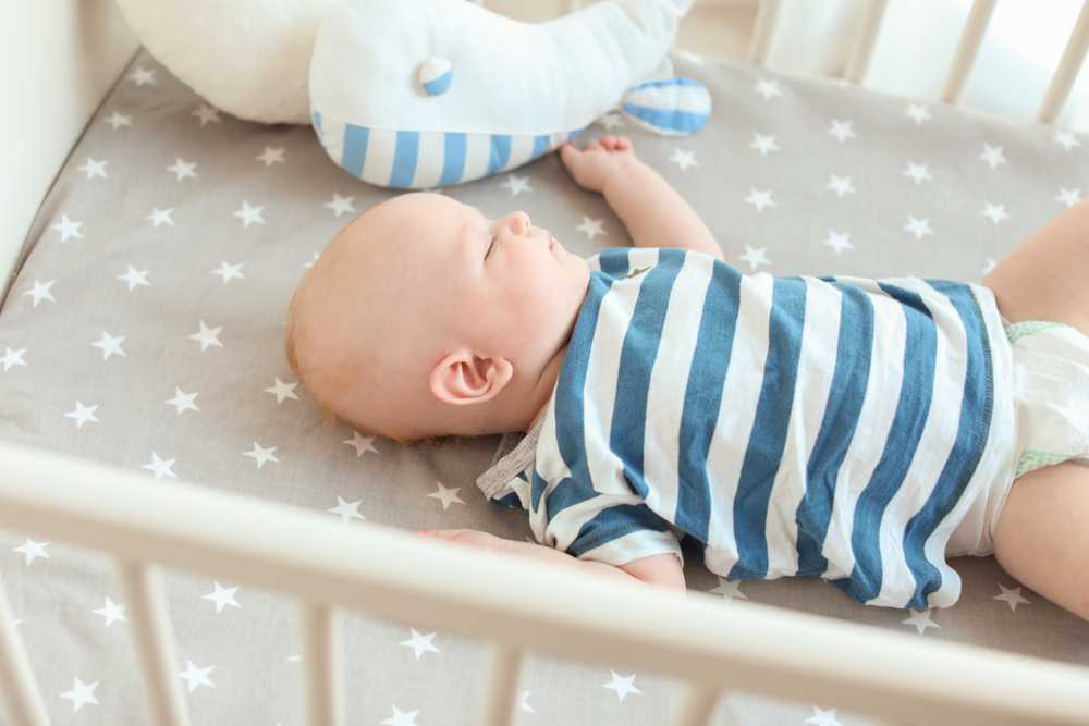 Простынка не должна свободно свисать до пола: кроха может в ней запутаться и упасть. Лучше всего подвернуть ее края под матрас или купить изделие на резинке;