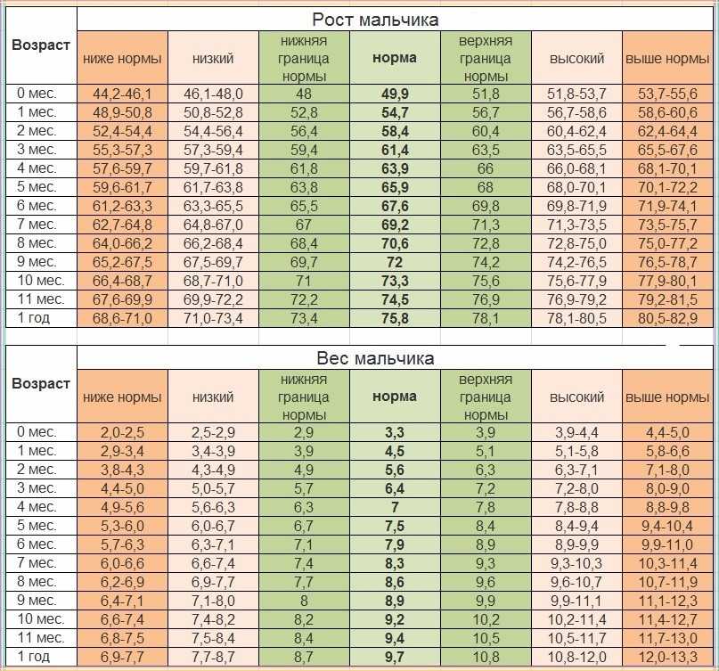 Таблица веса и роста грудного ребенка по месяцам (до 1 года)