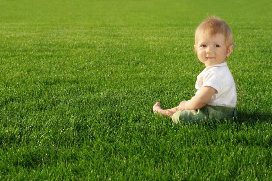Игры для развития двигательных навыков с годовалым ребенком можно проводить на траве