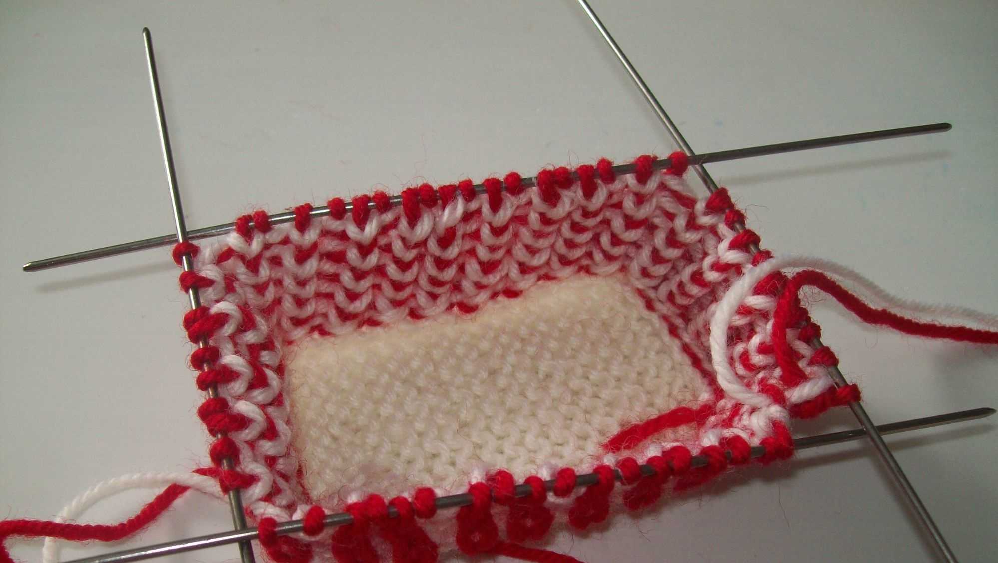 Повторяем эти же 10-12 рядов: 2-3 изнаночными, 2 лицевыми, 2-3 изнаночными, 4 резинкой.