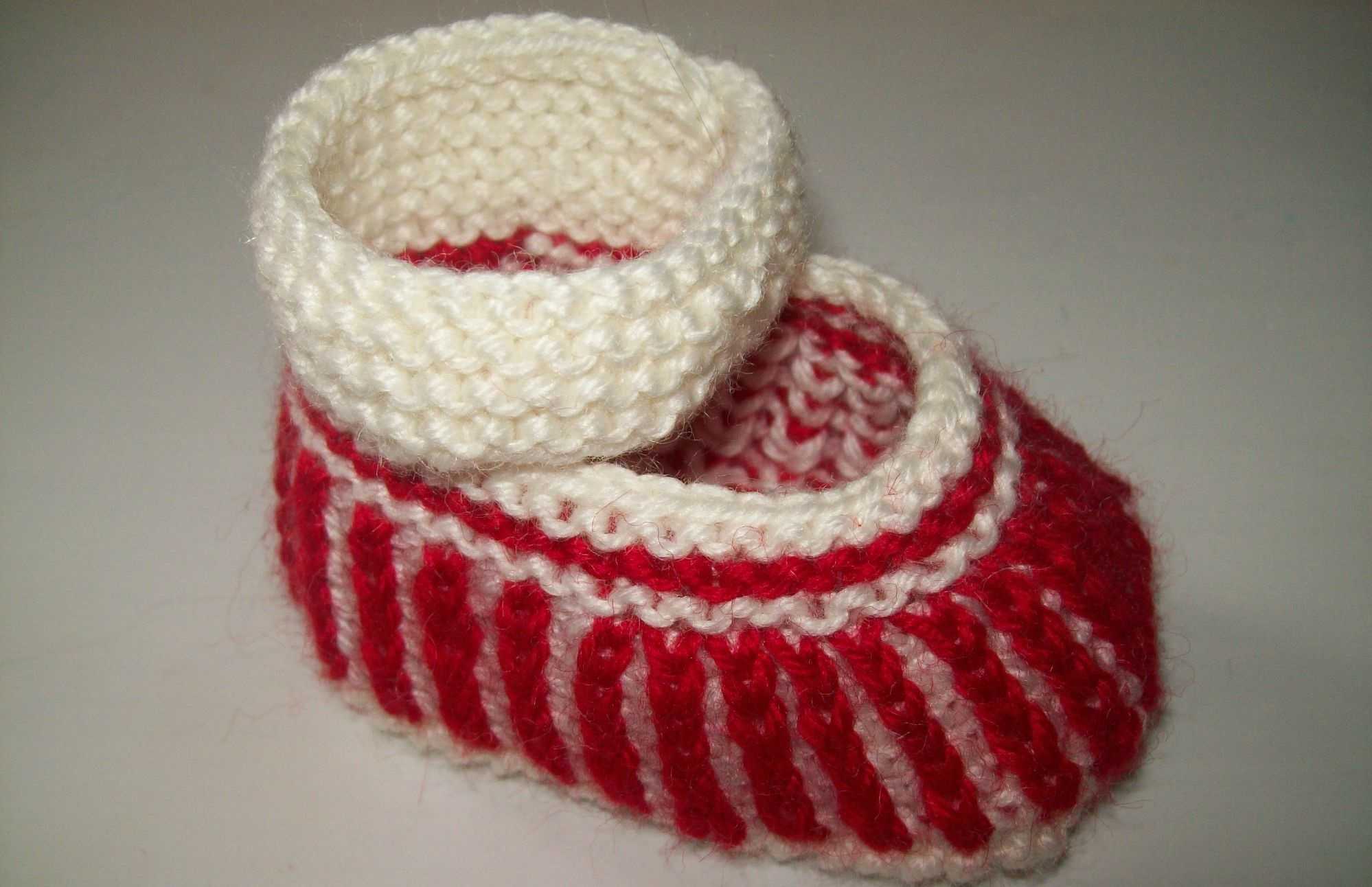 Этот вид почти не отличается от простого. Чаще всего их вяжут обычными нитками, а в качестве декора используют разные цвета, с помощью которых удается придать изделию вид ботинок. Существуют разные способы создания этого аксессуара как на спицах, так и крючком.