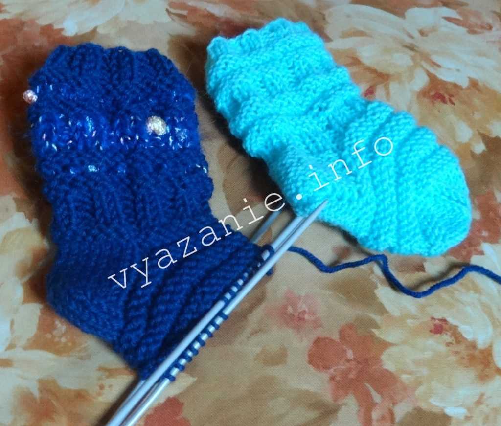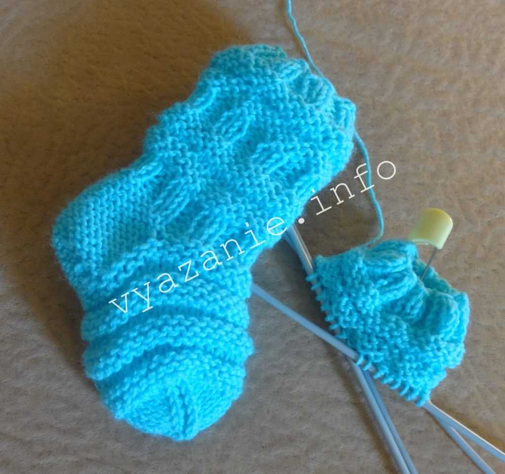 Описываю, как я вязала синие пинетки. Мне они больше нравятся.