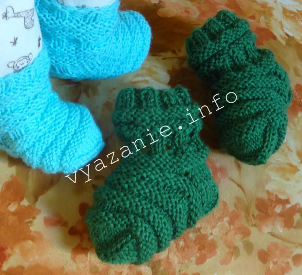Как вязать пинетки носочки спицами для новорожденных без шва.